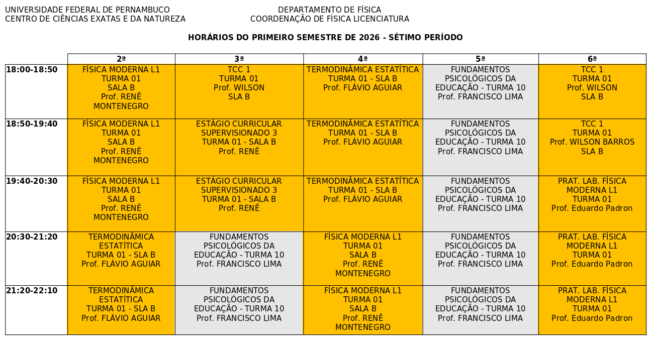 - Horário do Sétimo Período