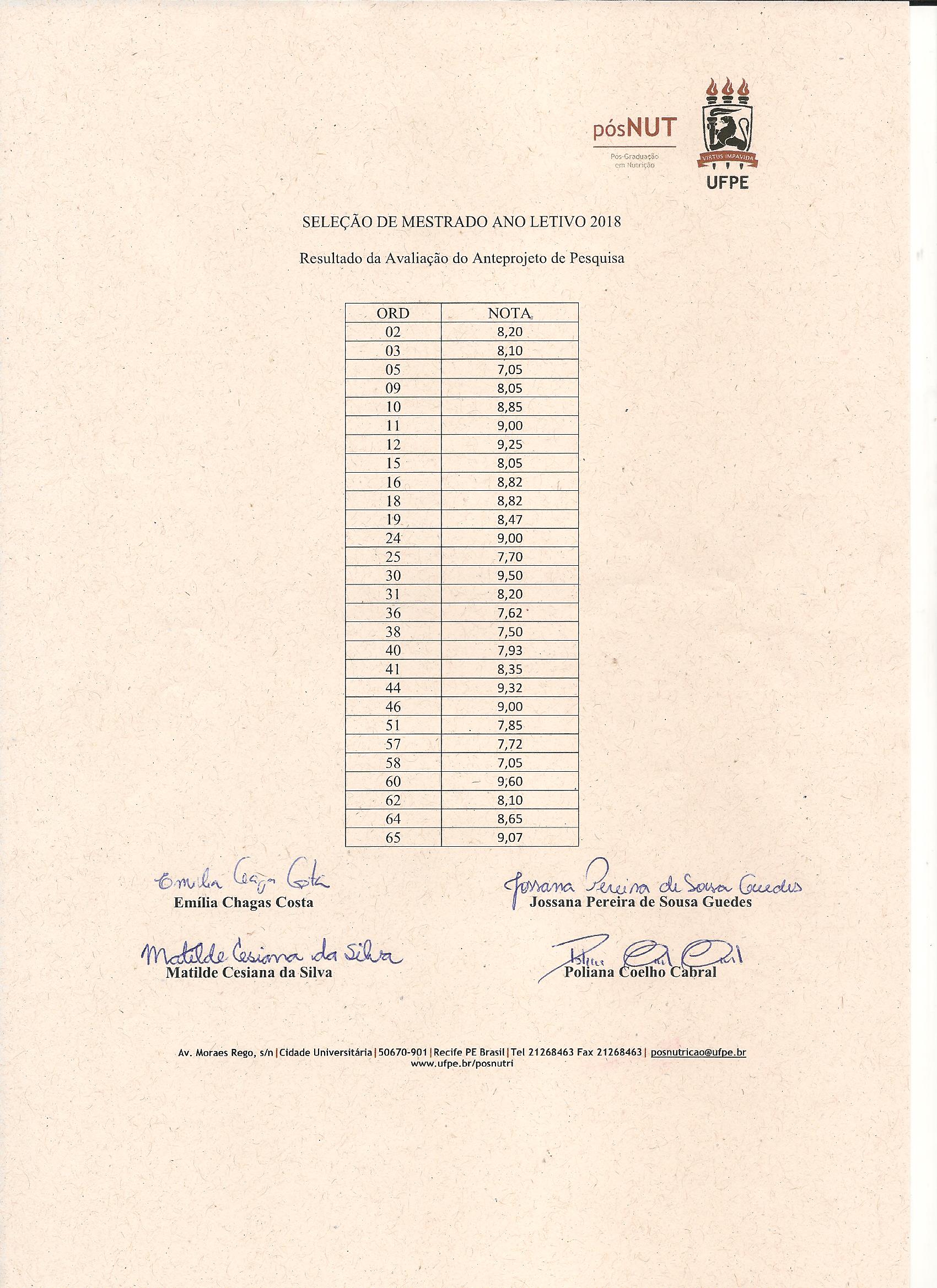 O Edital de Seleção para ingresso no Programa de Pós-Graduação em Nutrição no ano letivo de 2018 foi divulgado no Boletim Oficial da Universidade Federal de Pernambuco, contendo todas as diretrizes que regulam este concurso público de seleção e admissão nos níveis de Mestrado e Doutorado.
