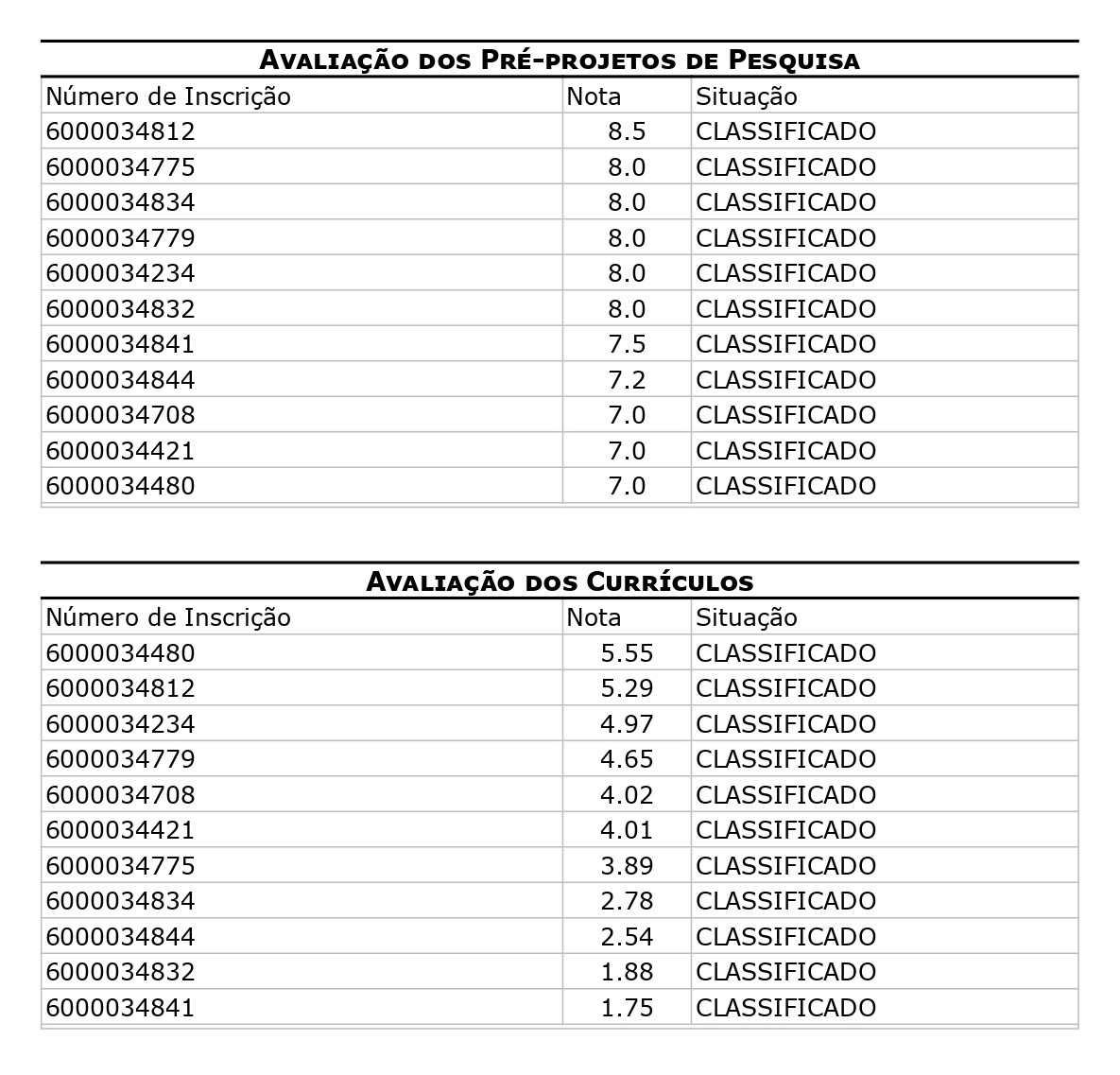 OS RESULTADOS INDIVIDUAIS BEM COMO AS INTERPOSIÇÕES DE RECURSO DAS ETAPAS DO PROCESSO SELETIVO - MESTRADO E DOUTORADO - DEVEM SER APRECIADOS NA ÁREA DO CANDIDATO, NO PORTAL SIGAA
