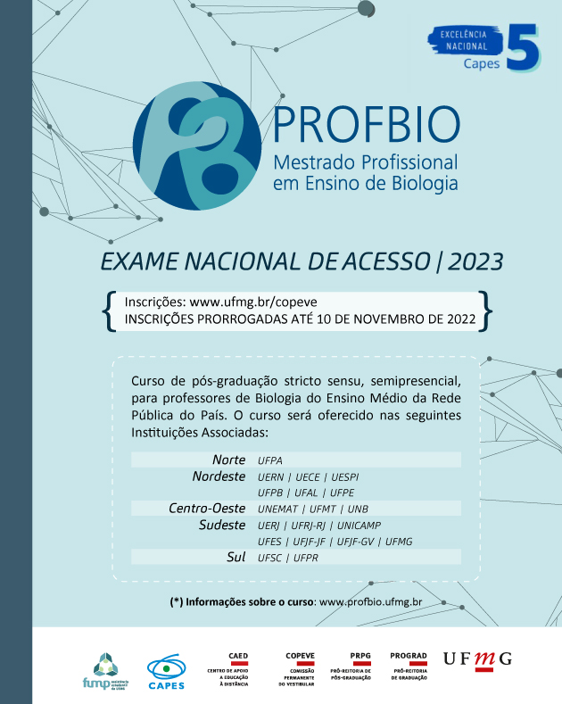 O PROFBIO – Mestrado Profissional em Ensino de Biologia em Rede Nacional é um curso de pós-graduação stricto sensu que tem como objetivo a qualificação profissional de professores das redes públicas de ensino em efetivo exercício da docência de Biologia. O curso pauta-se na lógica da construção e consolidação dos conhecimentos biológicos, através da aplicação do método científico e de utilização de tecnologias da informação e comunicação (TICs), sendo esse “conhecimento construído” associado à transposição didática imediata para a sala de aula, de maneira que o mestrando possa trabalhar simultaneamente com seus alunos do ensino médio os conceitos-chave explorados em cada tópico de Biologia.