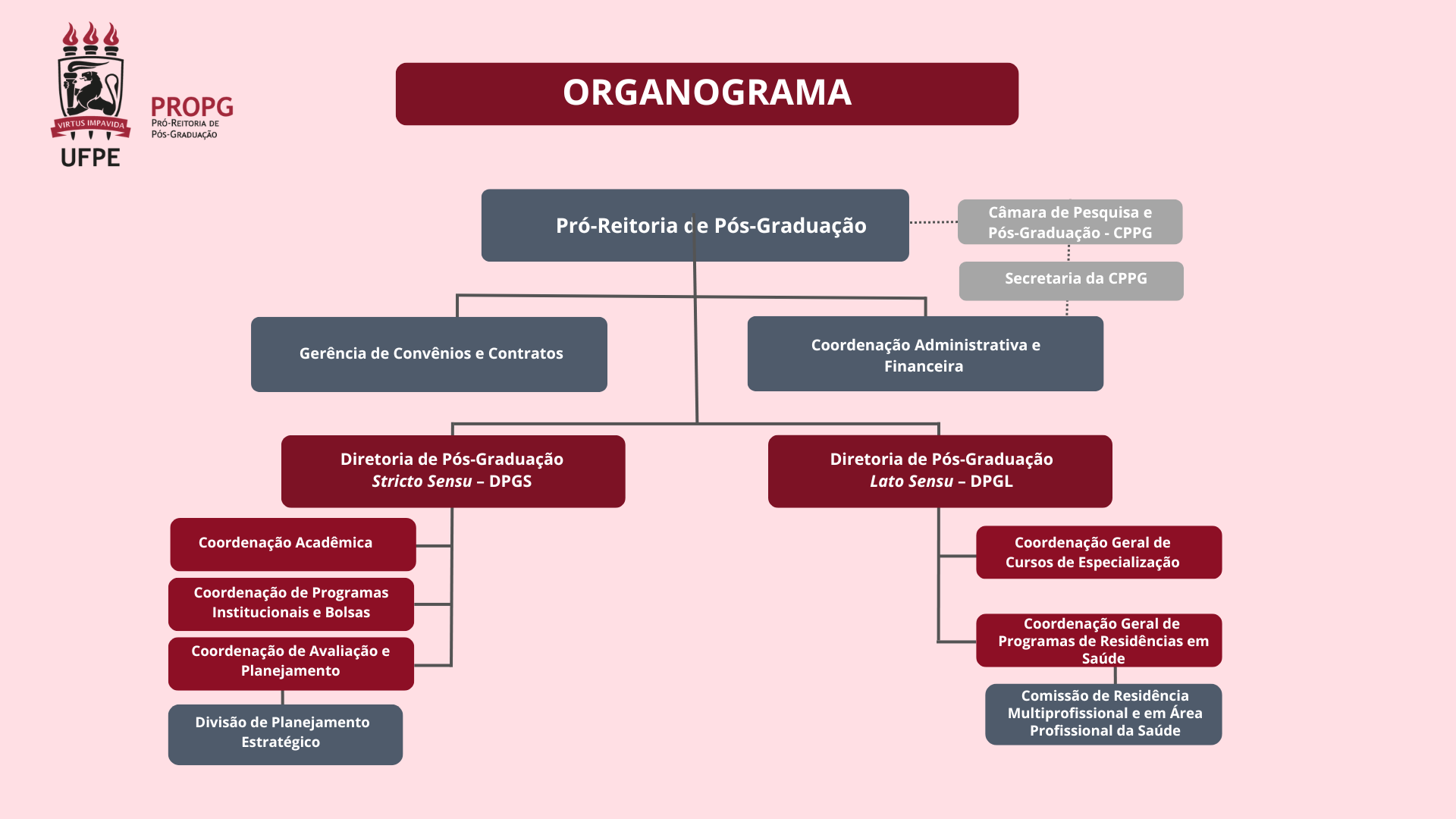 A Pró-Reitoria de Pós-Graduação (PROPG) tem por finalidade o planejamento, a gestão, a supervisão e a avaliação das políticas de pós-graduação, garantindo a qualidade do ensino de pós-graduação de forma articulada com a graduação, a pesquisa e a extensão.