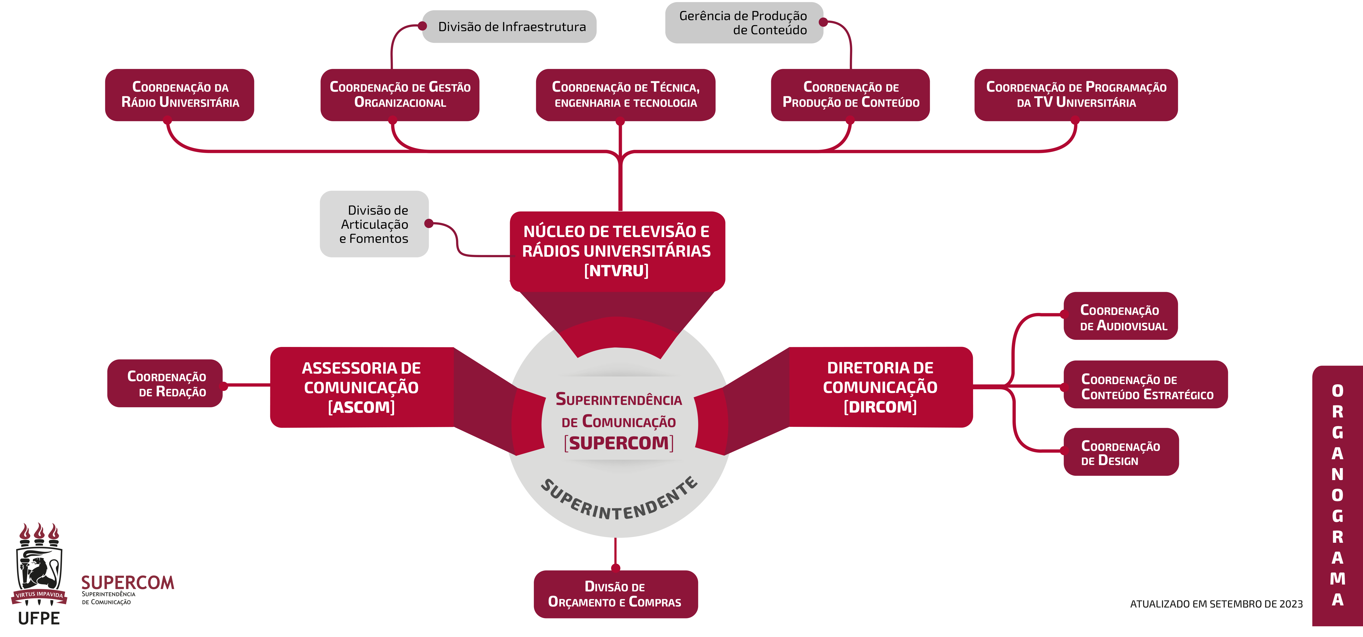 A Superintendência de Comunicação (Supercom) da UFPE é formada pela Assessoria de Comunicação (Ascom), Diretoria de Comunicação (Dircom) e Núcleo de TV e Rádios Universitárias (NTVRU).