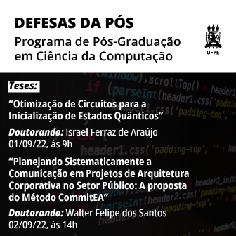 - Ciência da Computação promove defesa de teses de doutorado amanhã (1º) e dia 2 de setembro