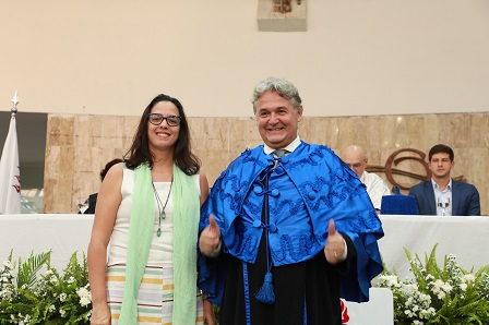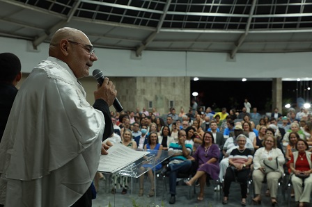 O professor Ricardo Medeiros, vice-diretor do CFCH, abriu a cerimônia e aproveitou o momento para agradecer pela convivência e trabalho com os diretores dos centros, na gestão que passou, “pois uma gestão realizada com compromisso, mas também com afeto, faz muita diferença”. Em seguida, a pró-reitora de Pós-Graduação (Propg), professora Carol Leandro, foi convidada para fazer a transladação da samarra do reitor, enquanto a técnica Isabella Andrade tocou a música “Lamento Sertanejo” no violão, que o professor Alfredo Gomes aprecia muito. A pró-reitora de Extensão e Cultura, Conceição Reis, colocou o colar reitoral. Roberta Japiassu, assessora do cerimonial da UFPE, fez a leitura do ato de nomeação do reitor no Diário Oficial pelo presidente Luiz Inácio Lula da Silva, reconduzindo-o ao cargo.