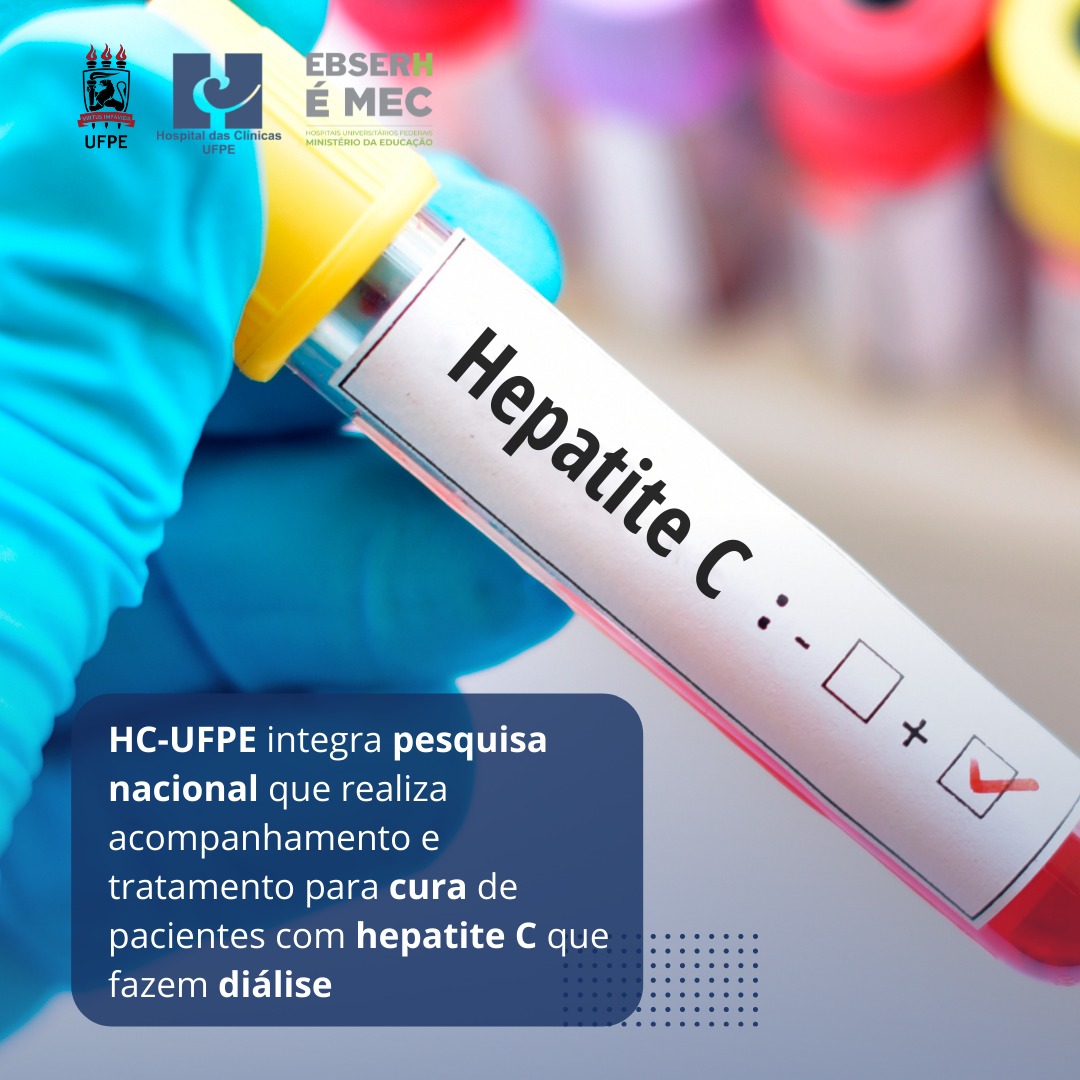 O Hospital das Clínicas da UFPE é o centro especializado em Pernambuco que está realizando o tratamento de pacientes com hepatite C que também fazem diálise. Esse tratamento no hospital-escola, que é baseado num antiviral de ação direta de última geração e de grande efetividade, integra o projeto de pesquisa multicêntrico “Registro, caracterização e acompanhamento de pacientes com doença renal crônica sob terapia dialítica candidatos a tratamento da hepatite C crônica”, presente em todos os Estados do Brasil e que começou em novembro de 2020 e vai até novembro de 2022. O HC é unidade vinculada à Empresa Brasileira de Serviços Hospitalares (Ebserh).