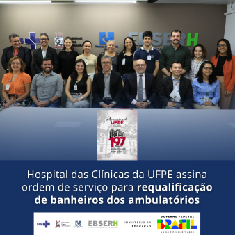 Vinte e quatro banheiros dos ambulatórios do Hospital das Clínicas da UFPE serão requalificados para dar maior conforto aos usuários do HC, incluindo a criação de um sanitário família acessível com fraldário (no 2° andar) e de um fraldário adulto e infantil (na Reabilitação, no térreo). A ordem de serviço para a realização da obra foi assinada, na manhã da terça-feira (9), na sala da Superintendência, em evento que contou com a participação do reitor da UFPE, Alfredo Gomes. O HC é uma unidade vinculada à Empresa Brasileira de Serviços Hospitalares (Ebserh).